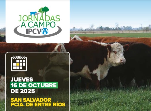 Bajo el slogan “Nuevas tecnologías para la ganadería mesopotámica”, el Instituto de Promoción de la Carne Vacuna Argentina (IPCVA) llevará a cabo una nueva Jornada a Campo en el Establecimiento La Lucrecia de San Salvador, Provincia de Entre Ríos (Acceso a Jubileo, Ruta Nacional 18 Km 190) el próximo jueves 16 de octubre de 2025.
